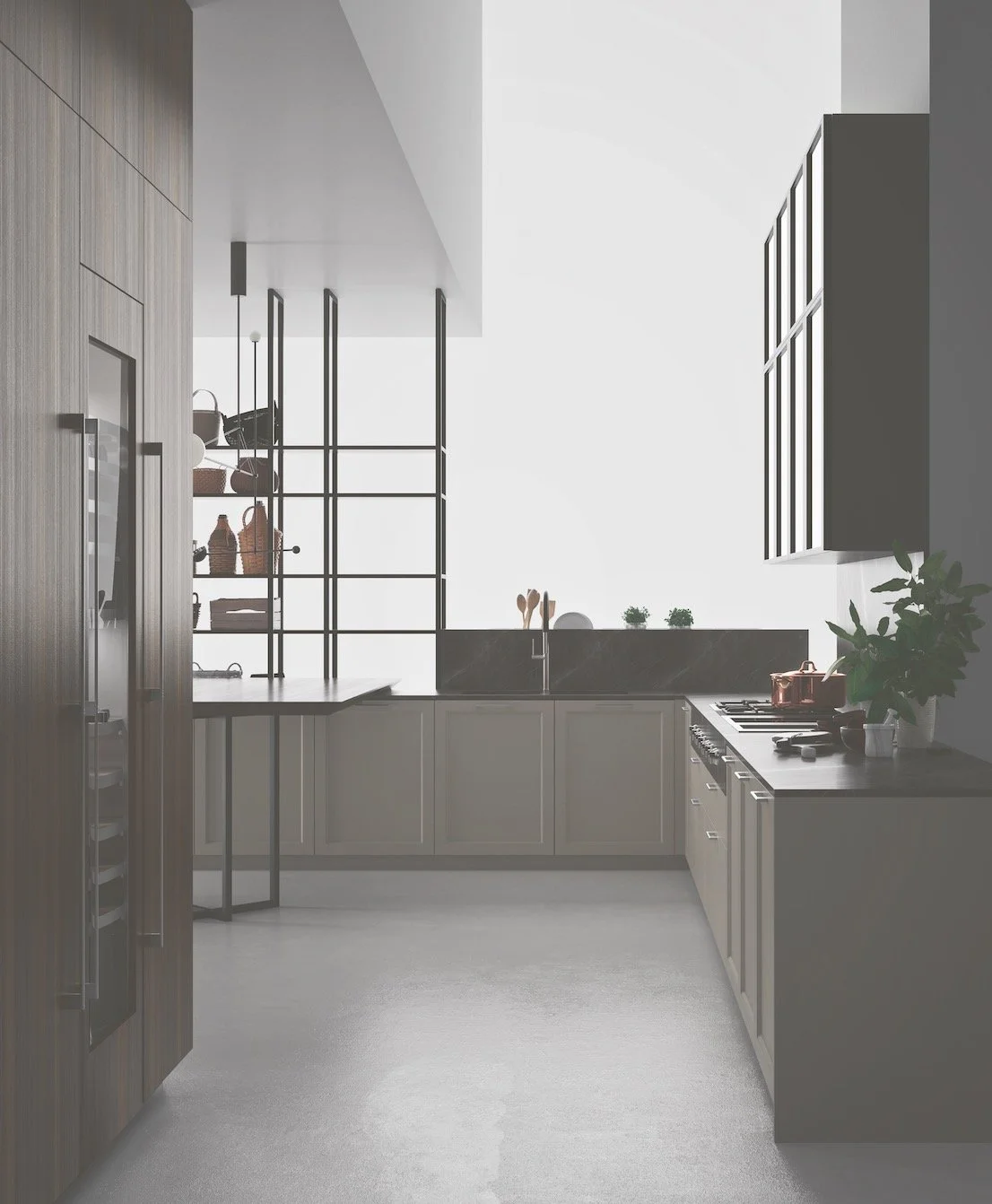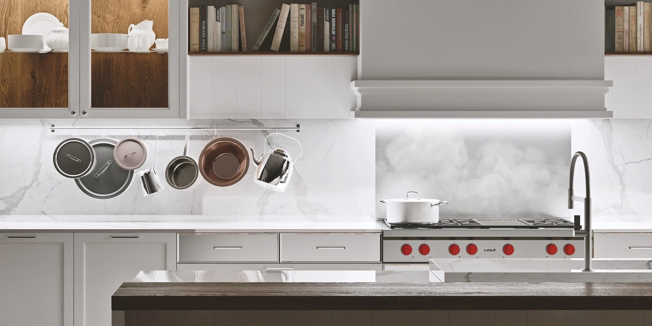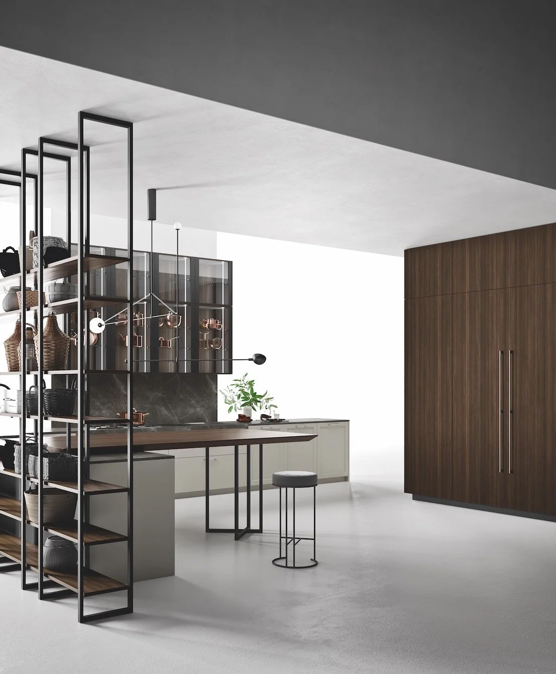 This modern Italian kitchen range accomplishes compositions of great linearity and clean lines.