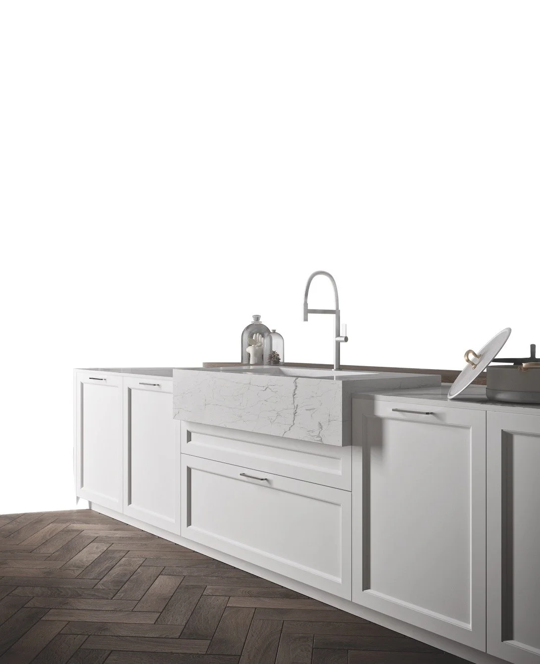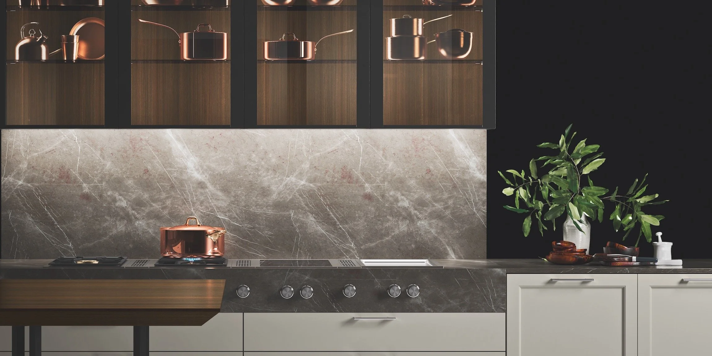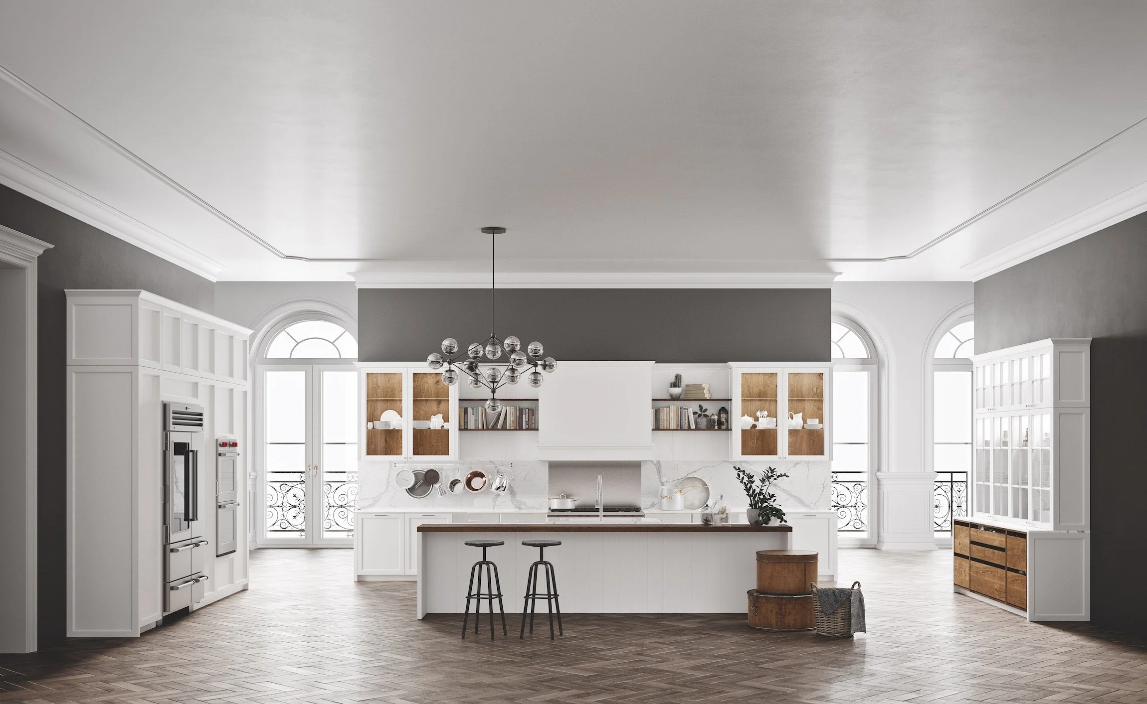 This modern Italian kitchen range accomplishes compositions of great linearity and clean lines.