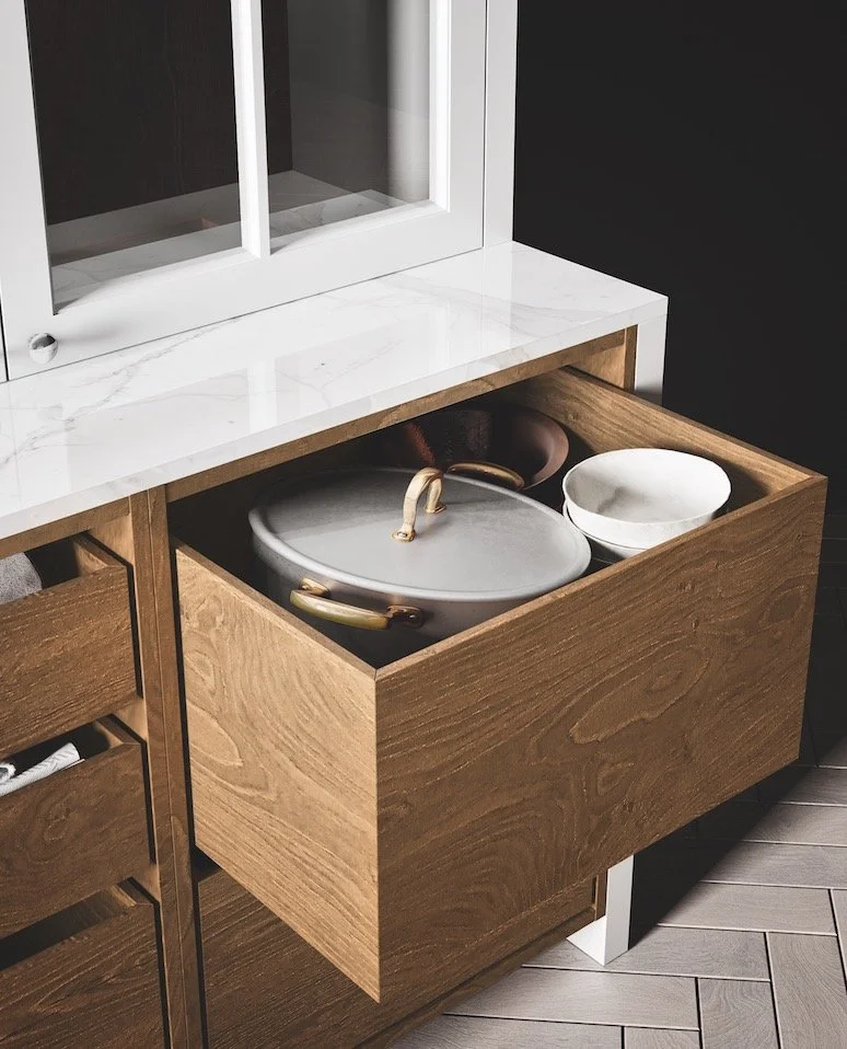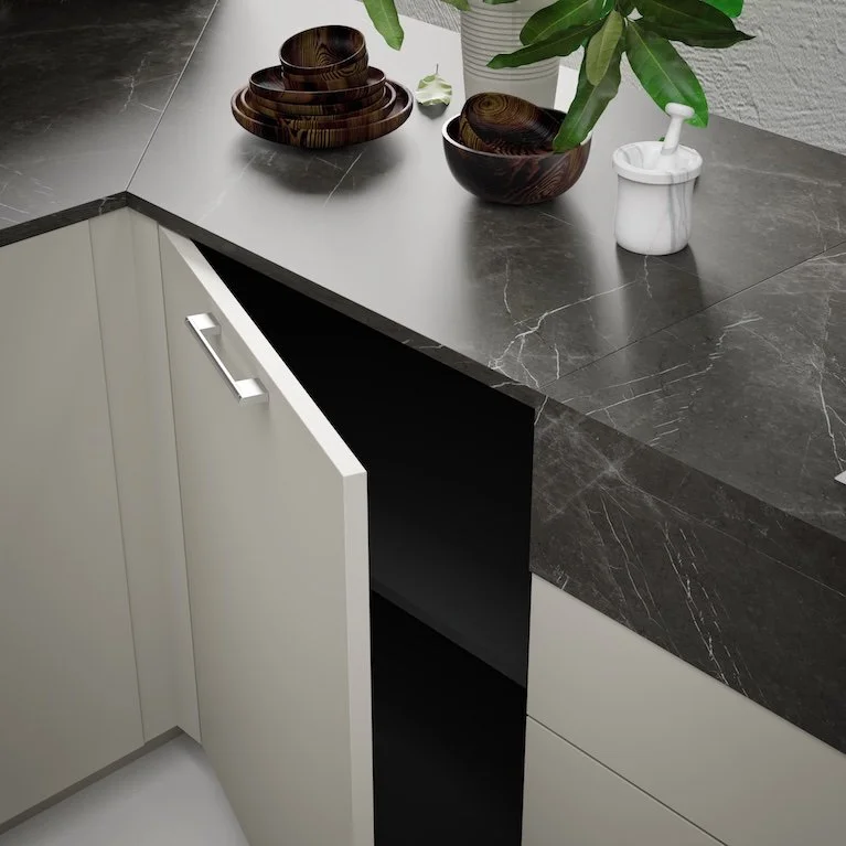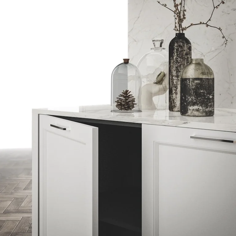 The front panel of the door aligns with the outer edges, defining a single volume for uniformity and aesthetic continuity.